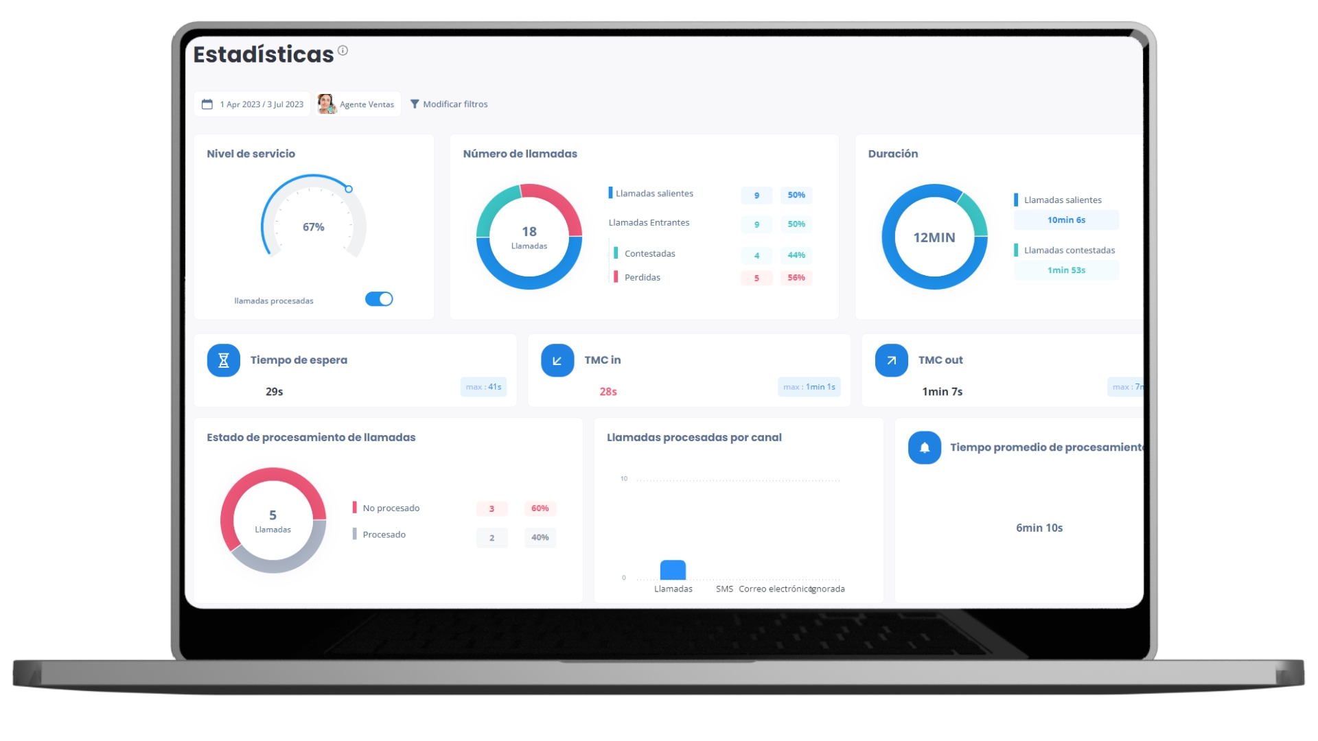> Obtén tus estadísticas según tipo de llamada, usuario, grupo o número.